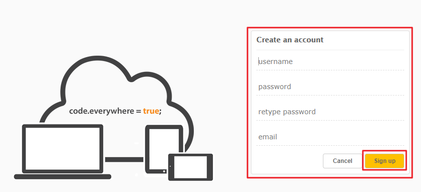 - username : 사용할 ID, password : 비밀번호, retype password : 비밀번호 확인을 입력 후 Sign up을 누릅니다