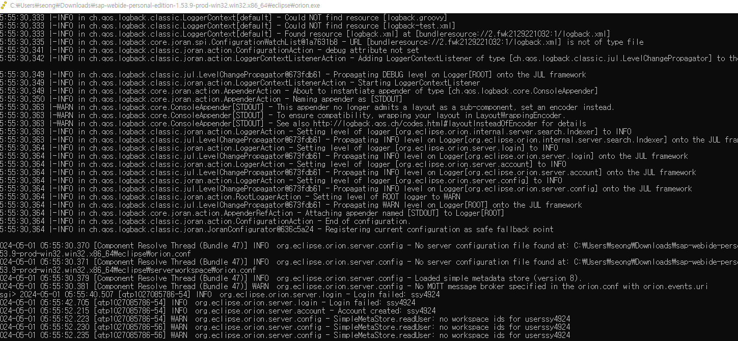Web-IDE 실행을 위해 orion.exe 파일을 실행합니다.