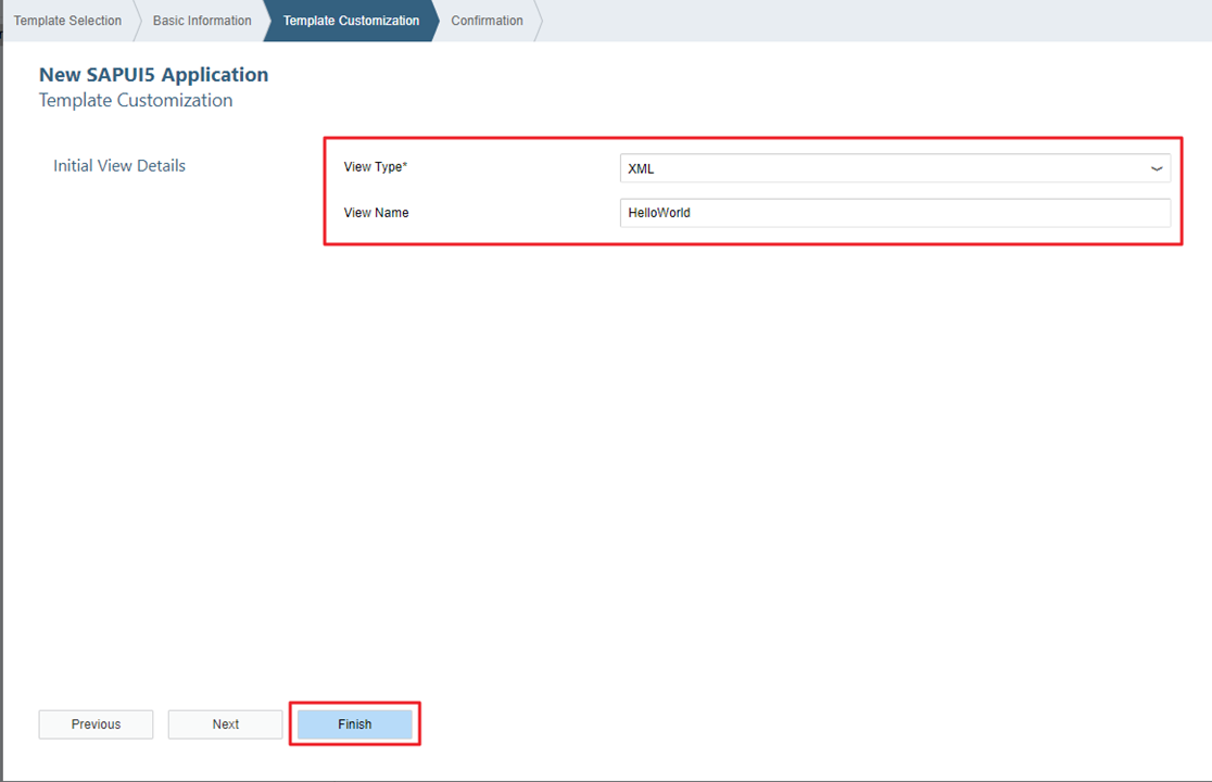 View Name 에 HelloWorld를 입력, Finish를 눌러 View생성을 완료 합니다.