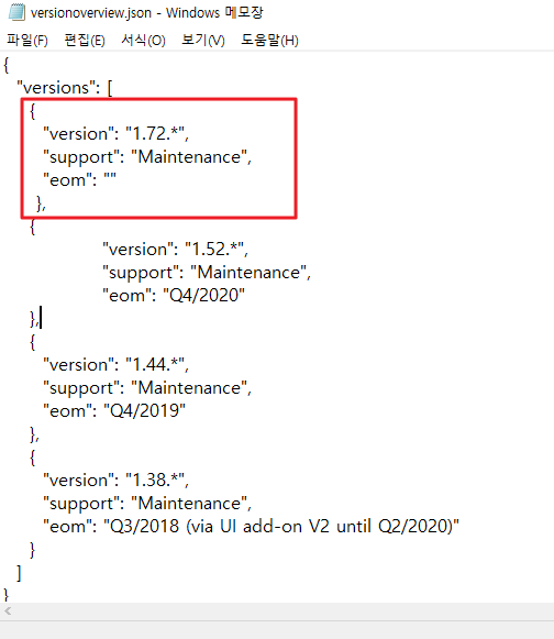 변경할 수 있는 버전을 확인해보니 1.52.13이 최신버전입니다.
