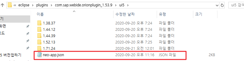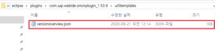 1) 폴더경로 eclipse > plugins > com.sap.webide.orionplugin_1.53.9 > ui5 이동.