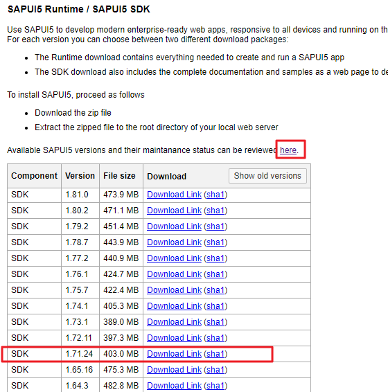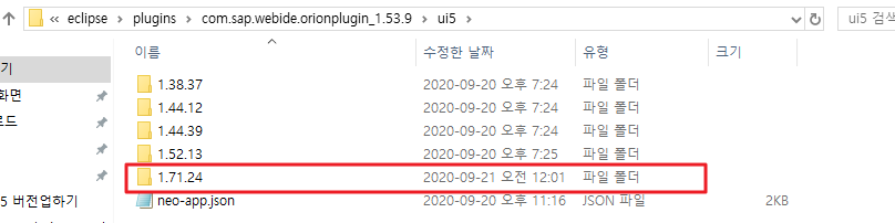 2) 현재 경로에 다운받은 sapui5-sdk-1.71.24 압축을 푼뒤 폴더명을 1.71.24 로 변경합니다.