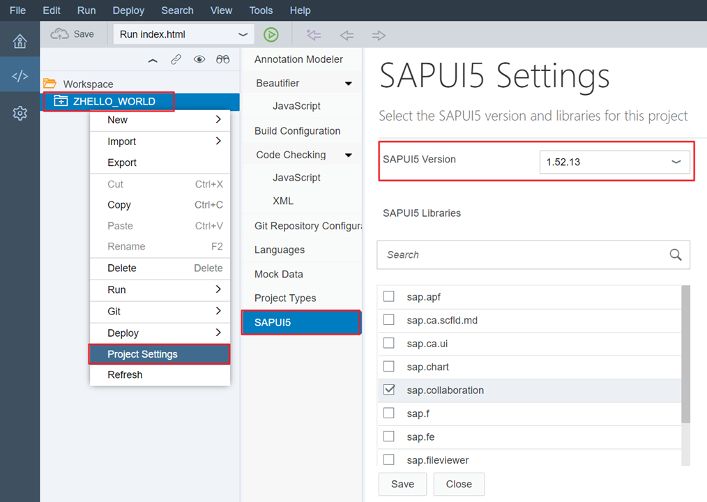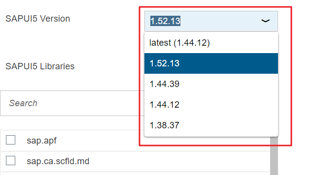 SAPUI5 항목을 클릭합니다 > SAPUI5 Version을 확인합니다 ( 현재 1.52.13 ).