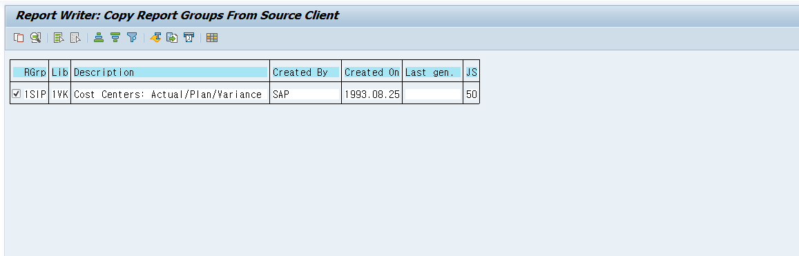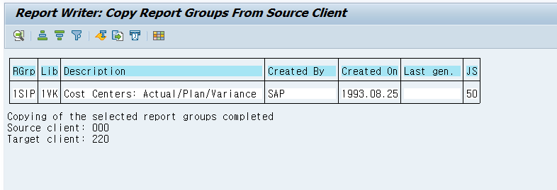 - Run t-code: GR59 and select 'Copy with depending objects' to re-import report group 6O06 from client: 000