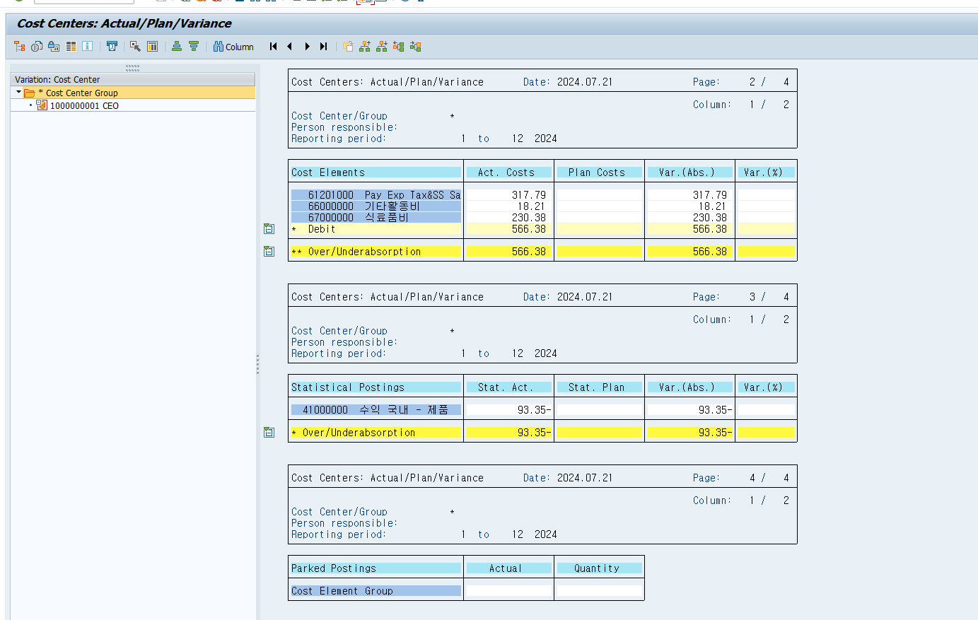 생성이 완료되면 원가계획/실제 보고서가 잘 컴파일된다.