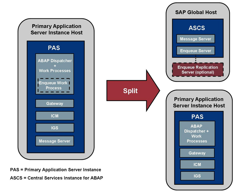 그리고 이 CI는 언제부턴가 이름이 PAS로 바뀝니다. 그러다가 NetWeaver 7.1부터인가 PAS의 역할 중에 Message Server와 Enqueue Server만 떼어내서 ASCS라는 것을 만들어냅니다.